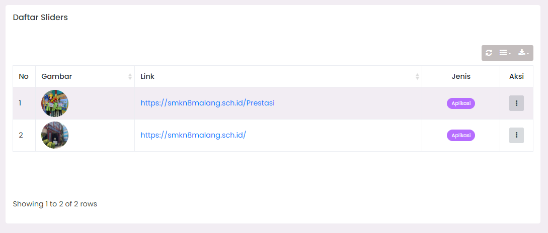 - Find the slider data you want to edit in Slider List.