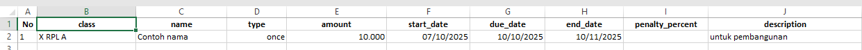 - Fill in the billing fee data according to the available column headers (as in the example image):