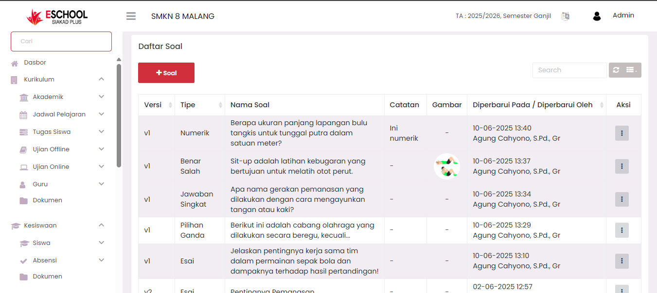The Question Bank feature is the central repository for all questions that will be used in creating online exams. Through this feature, Teachers can manage questions independently, from creating question bank categories, adding question items, to updating questions according to the subjects taught.